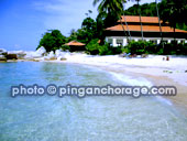 PHOTOS © PING ANCHORAGE LOCATION Lang Tengah Island | FACT (East Wing) - 8 Standard, 7 Superior, 5 Deluxe Low, 4 Deluxe High. (West Wing) - 16 Executive Deluxe, 2 Family, 3 Cabana | ROOM All rooms come complete with an air-condition unit, attached bathroom with hot shower and some rooms with bathtub. Cabanas, executive deluxe, deluxe, family and superior rooms with additional tea and coffee making facilities and a mini fridge | FACILITY restaurant serves Malaysian and Western cuisine with a breathtaking view of the lagoon and turquoise crystal clear waters. Swimming pool, Spa, Dive Centre, sports and recreation, scuba-diving, snorkelling and jungle trekking.