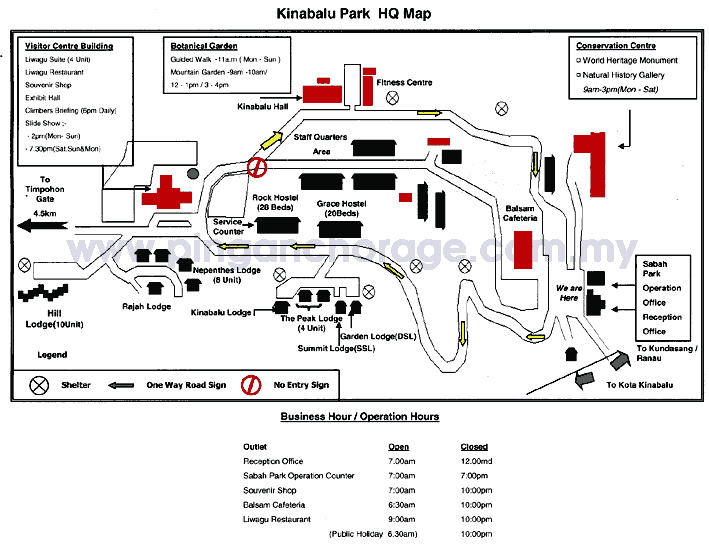 Park’s Headquarters, Lower Liwagu Valley and Mount Kinabalu. Attractions