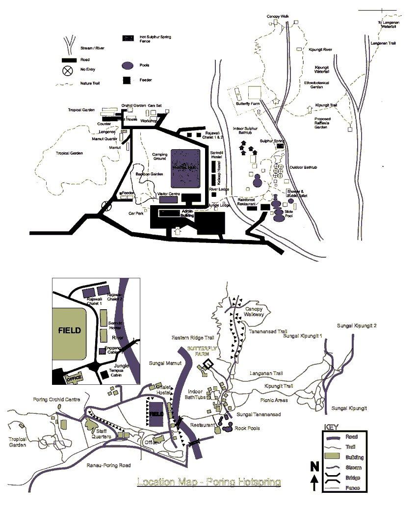 on the Park's boundary at the edge of the Mamut River, Poring Hot Spring
